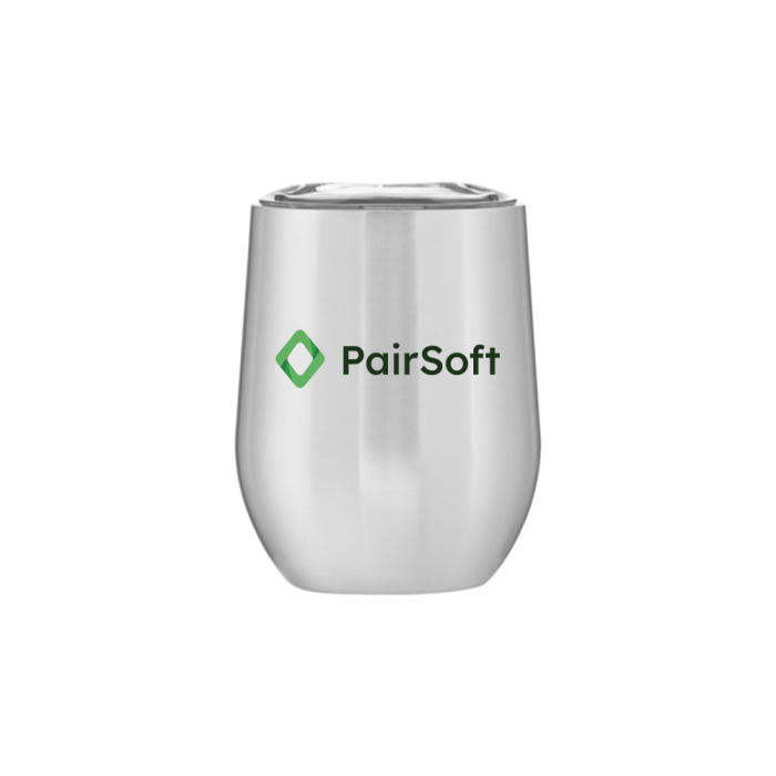 12 oz double wall 18/8 stainless steel thermal tumbler with copper vacuum insulation, stainless steel rim, push-on clear lid, and powder coated finish · gift box included